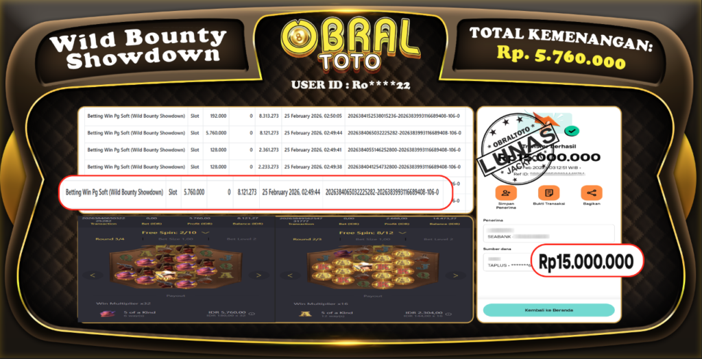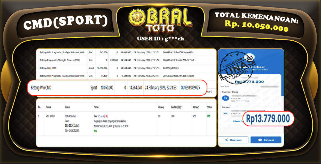 OBRALTOTO – Selamat Kepada Pemenang User ID : g***eh JP CMD Rp,10.050.000 JUTA 25 FEBRUARY 2026 Situs...
