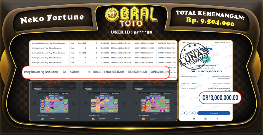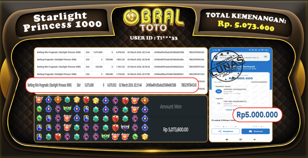 OBRALTOTO – Selamat Kepada Pemenang User id : pr***59 JP SWEET BONANZA XMAS Rp.9.504.000 Juta 02 MARET...