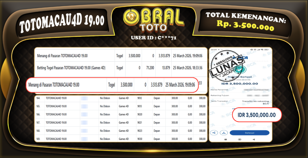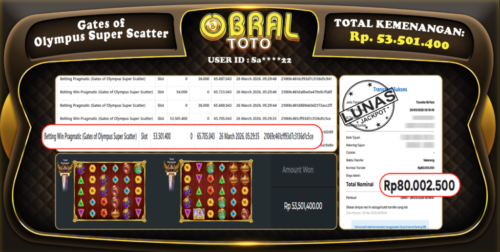 OBRAL4D – Selamat Kepada Pemenang User id : s***da OBRAL4D- JP SABA SPORT Rp,8,926,519,- 25 Maret 2026...