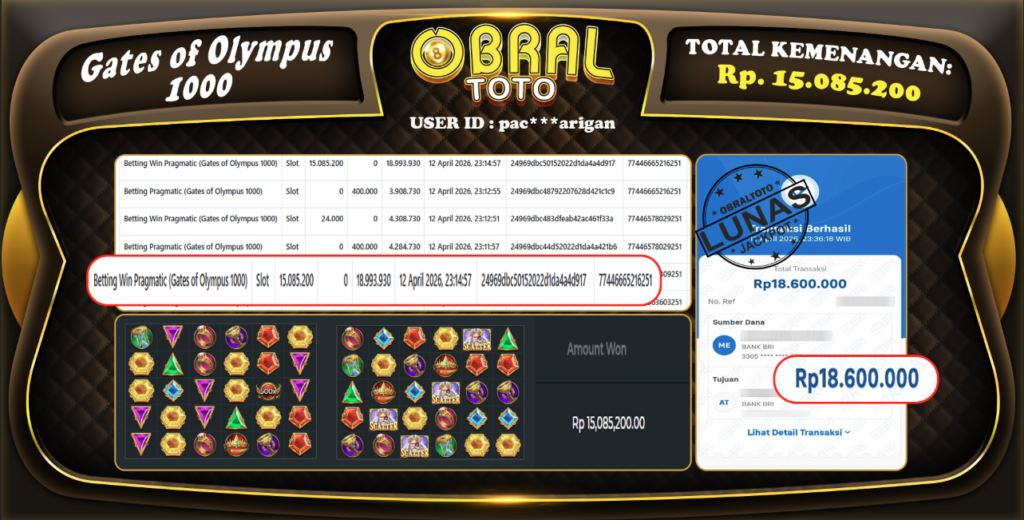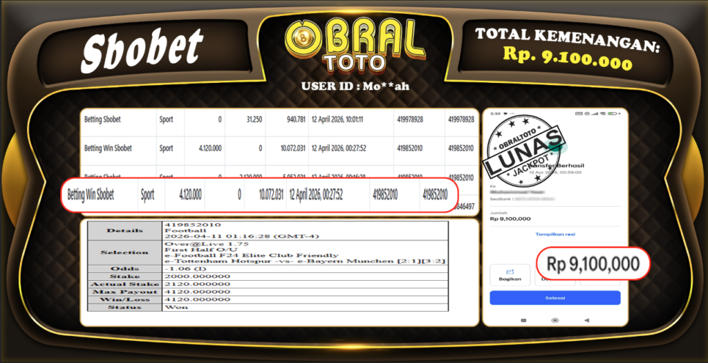 OBRALTOTO – Selamat Kepada Pemenang User id : Mo**ah SBOBET, Rp.9.100.000,- 13 ARPIL 2026 – Situs game...