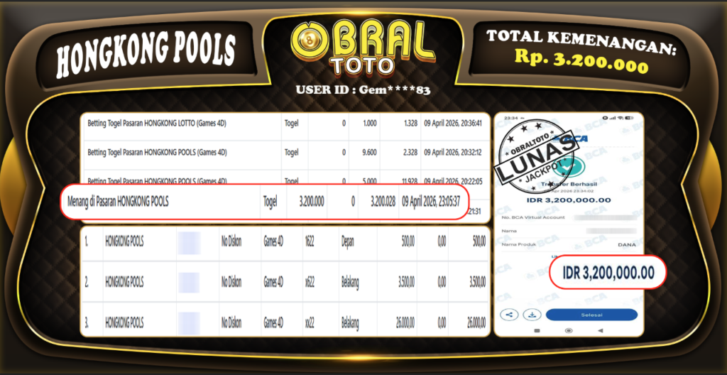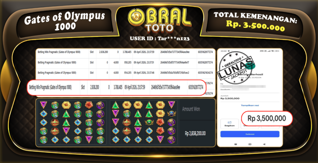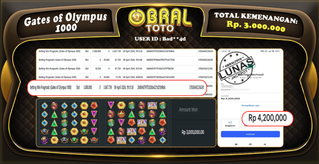 OBRALTOTO – Selamat Kepada Pemenang User id : Bad**4d JP Gates of Olympus 1000 Rp 3.000.000,- 10...