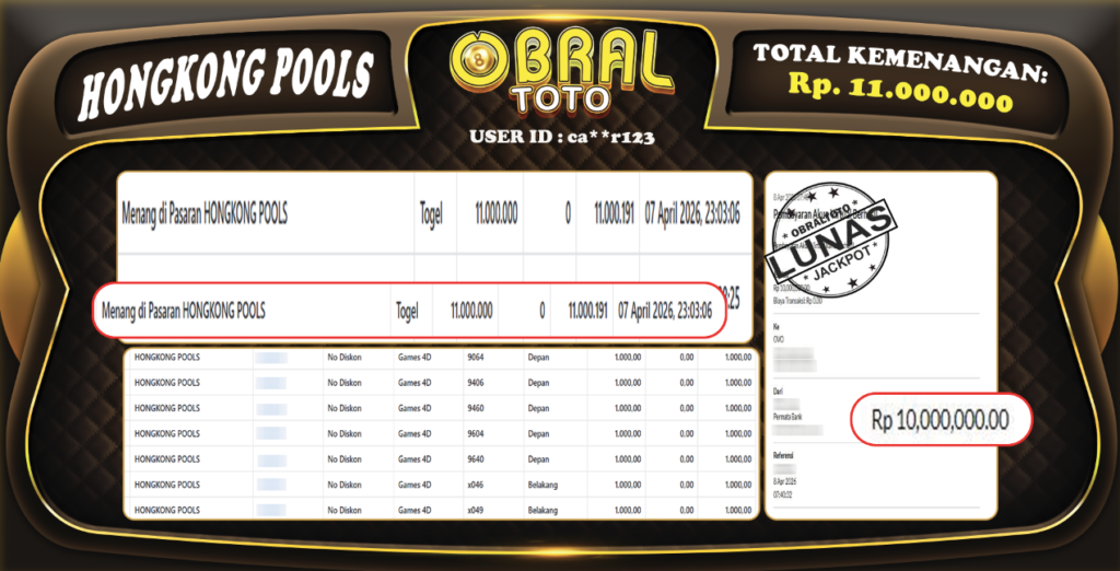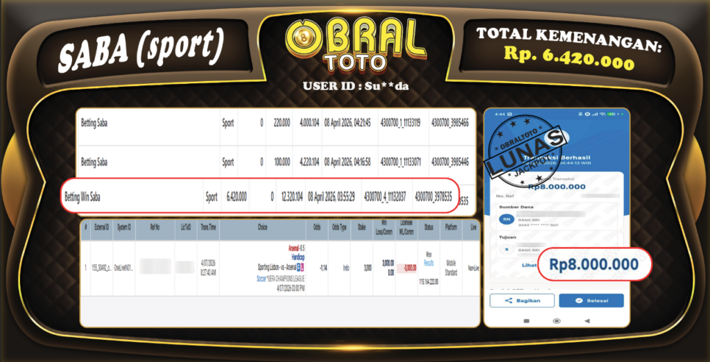 OBRALTOTO – Selamat Kepada Pemenang User id : Su**da OBRALTOTO- JP SABA SPORT Rp, 6.420.000,- 09 APRIL...