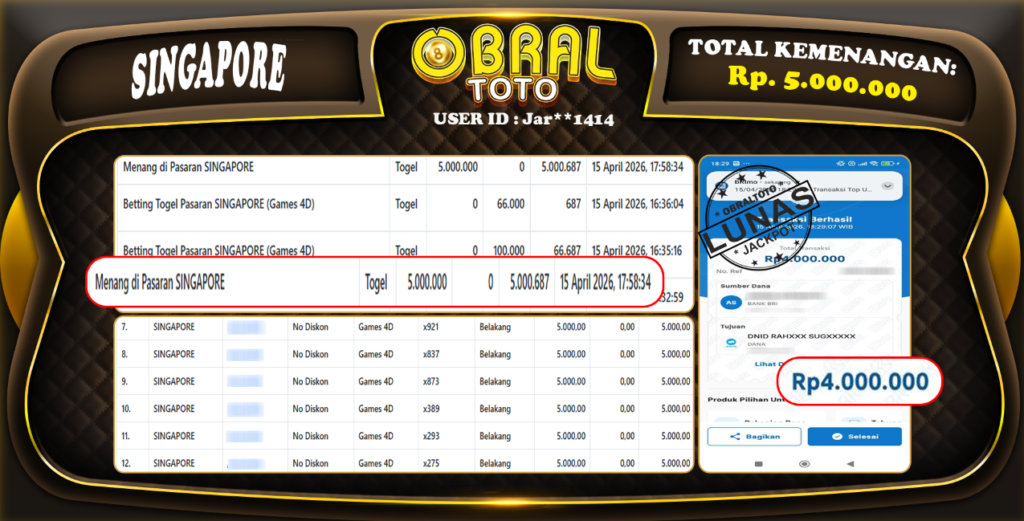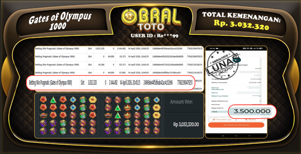 OBRALTOTO – Selamat Kepada Pemenang User id : Re***99 JP Gates of Olympus 1000 Rp 3.032.320 –...