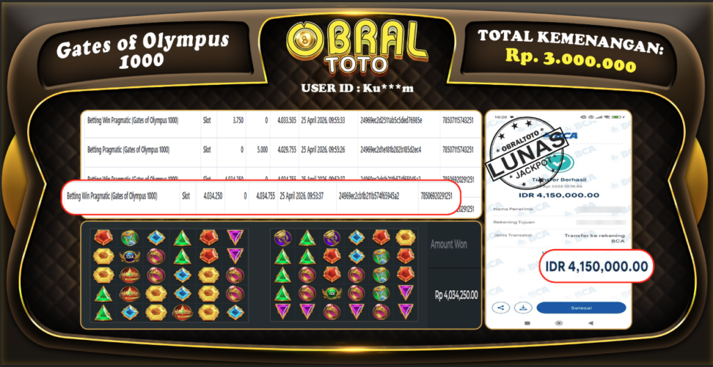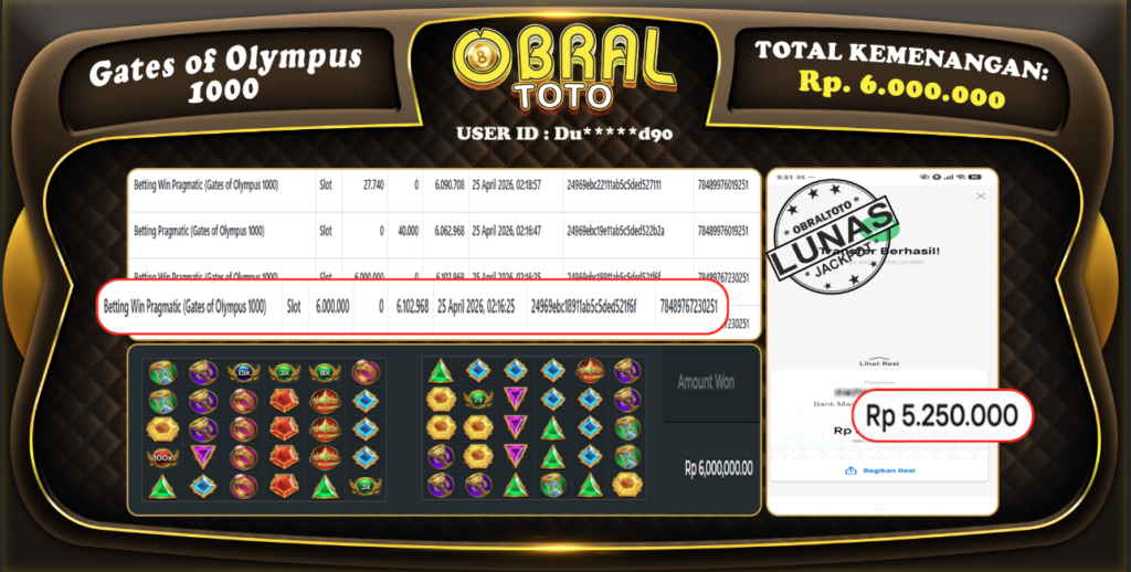 OBRALTOTO – Selamat Kepada Pemenang User id : Sul****27 JP FORTUNE OF OLYMPUS Rp 8.518.200 Juta 25...