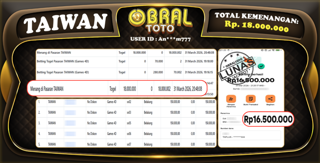 OBRALTOTO – Selamat Kepada Pemenang User ID : Po***oak JP HONGKONG POOLS Rp 46,800,000 juta 01 APRIL...
