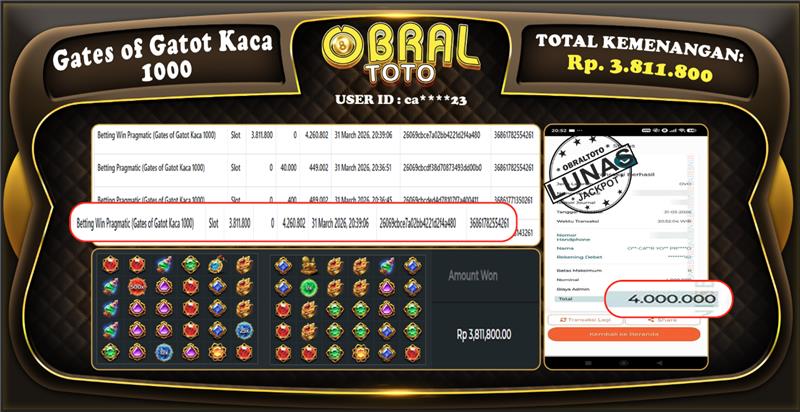 OBRAL4D – Selamat Kepada Pemenang User id : ca****23 JP Gates of Gatot Kaca 1000 Rp.3.811.800,- 01 APRIL 2026 – Situs game online terpercaya dengan bukti jp yang telah resmi dan terjamin di Indonesia, memberikan pengalaman bermain yang aman dan menyenangkan bagi para penggemar game online. Dengan hadirnya OBRAL4D , pemain dapat menikmati kemudahan akses ke berbagai permainan seru, peluang memenangkan hadiah besar, serta keuntungan menarik yang telah disiapkan khusus untuk para member lama maupun member baru. Platform ini dirancang untuk memberikan kenyamanan dan keamanan, sehingga setiap pemain dapat fokus menikmati permainan sekaligus meraih keuntungan maksimal.