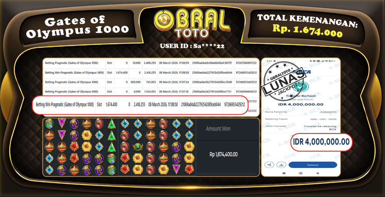 OBRAL4D – Selamat Kepada Pemenang User id : sa****22 Gates of Olympus Super Scatter Rp.1.674.000,- 09 Maret 2026 – Situs game online terpercaya dengan bukti jp yang telah resmi dan terjamin di Indonesia, memberikan pengalaman bermain yang aman dan menyenangkan bagi para penggemar game online. Dengan hadirnya OBRAL4D , pemain dapat menikmati kemudahan akses ke berbagai permainan seru, peluang memenangkan hadiah besar, serta keuntungan menarik yang telah disiapkan khusus untuk para member lama maupun member baru. Platform ini dirancang untuk memberikan kenyamanan dan keamanan, sehingga setiap pemain dapat fokus menikmati permainan sekaligus meraih keuntungan maksimal.