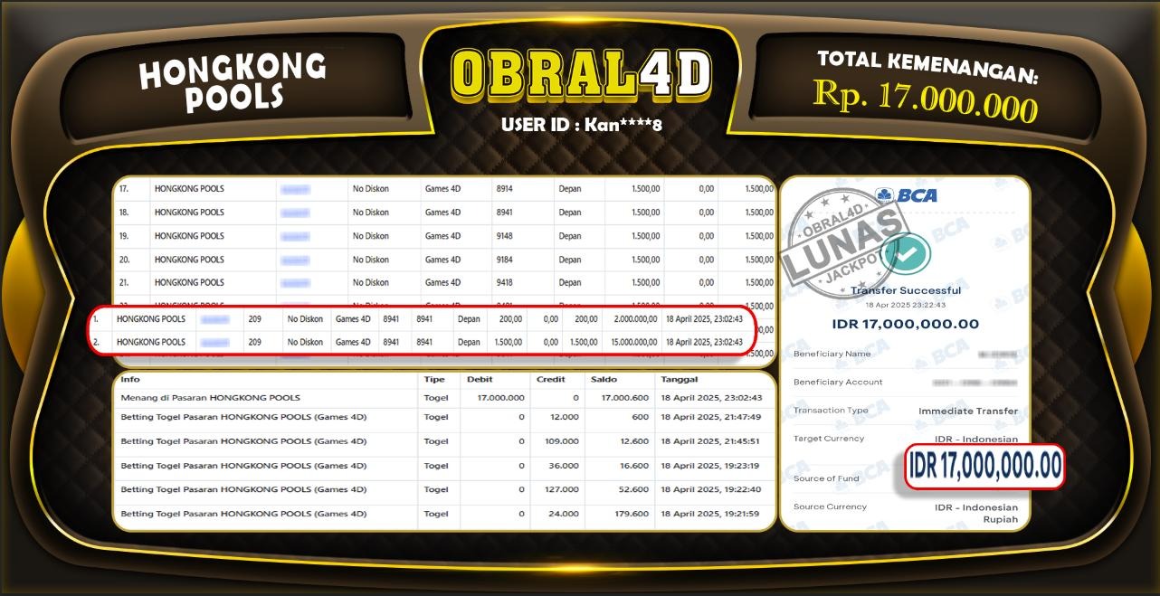 JACKPOT HONGKONG POOLS OBRAL4D 18 APRIL 2025