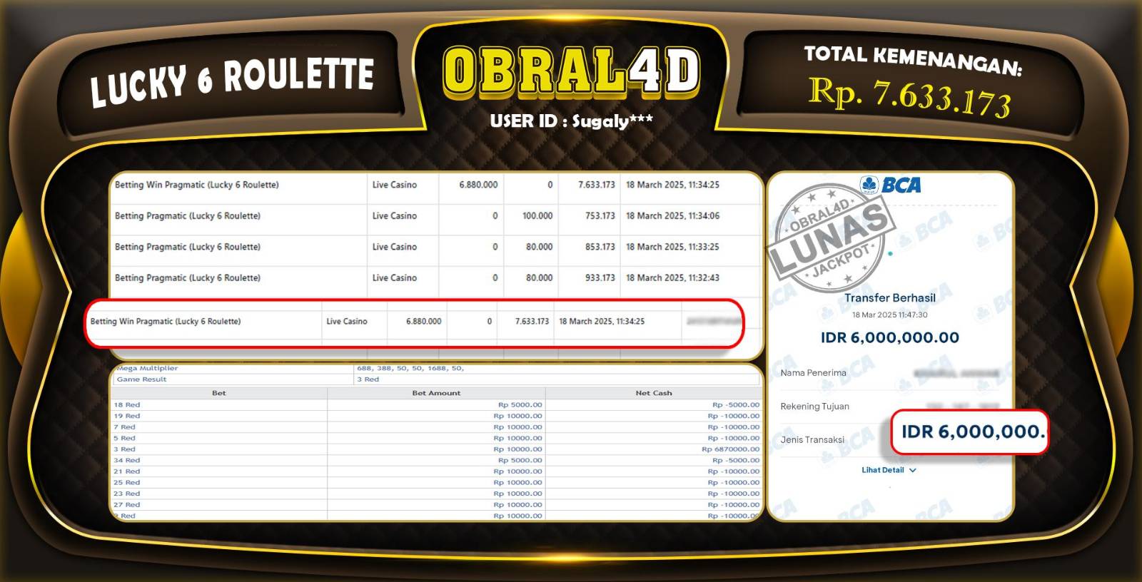 JACKPOT LUCKY & ROULETTE OBRALD 19 Maret 2025