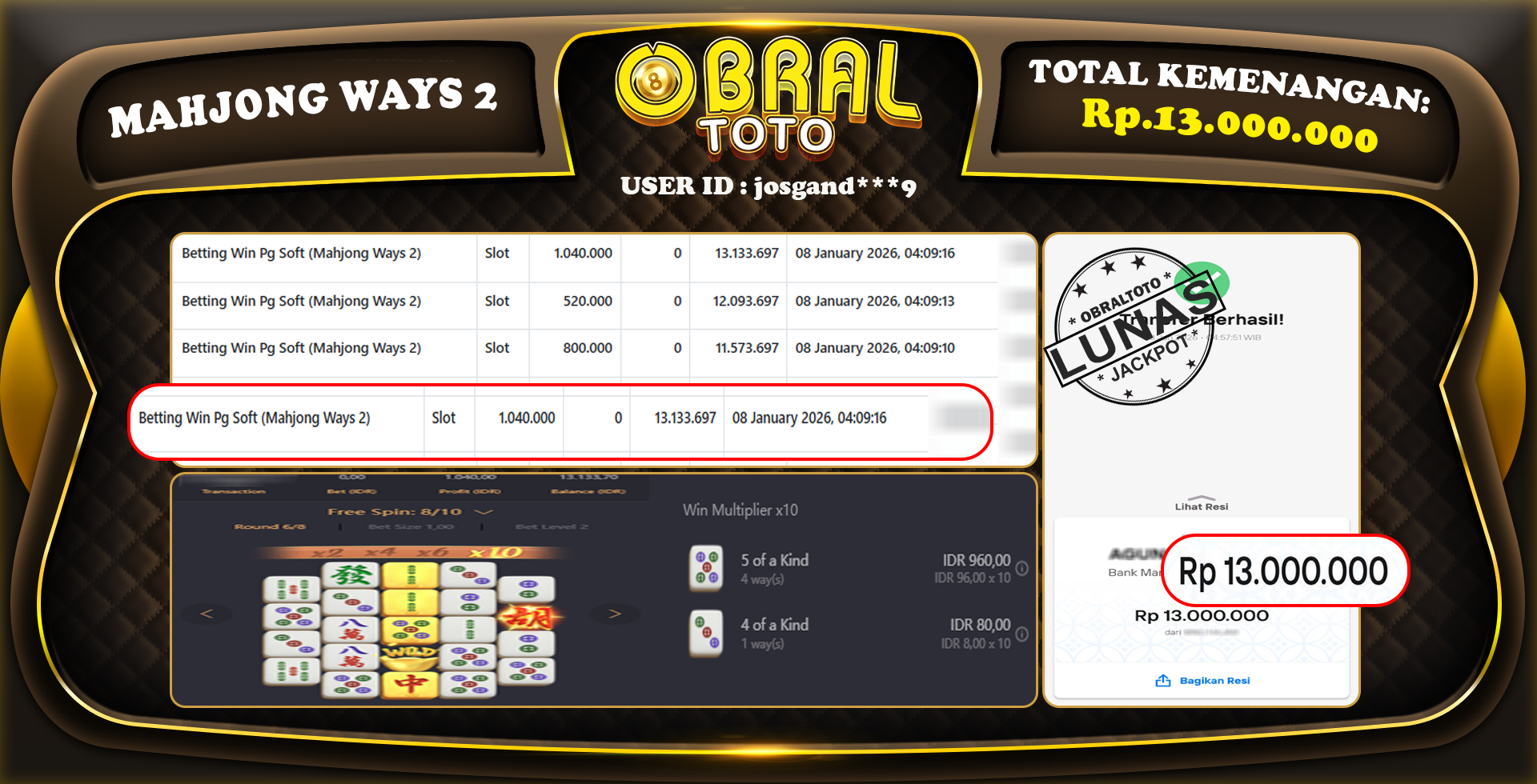 JACKPOT SLOT MAHJONG WAYS 2 OBRAL4D 09 January 2026