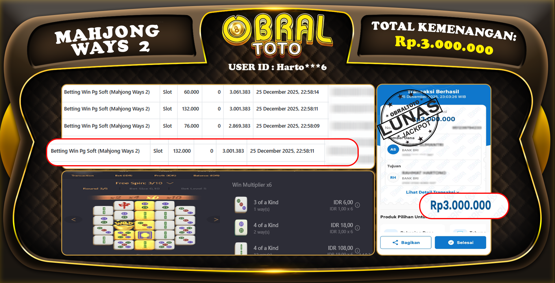 OBRAL4D – Selamat Kepada Pemenang User id : Harto***6 JP MAHJONG WAYS 2 3.000.000 Juta 26 DESEMBER 2025 – Situs game online terpercaya dengan bukti jp yang telah resmi dan terjamin di Indonesia, memberikan pengalaman bermain yang aman dan menyenangkan bagi para penggemar game online. Dengan hadirnya OBRAL4D , pemain dapat menikmati kemudahan akses ke berbagai permainan seru, peluang memenangkan hadiah besar, serta keuntungan menarik yang telah disiapkan khusus untuk para member lama maupun member baru. Platform ini dirancang untuk memberikan kenyamanan dan keamanan, sehingga setiap pemain dapat fokus menikmati permainan sekaligus meraih keuntungan maksimal.