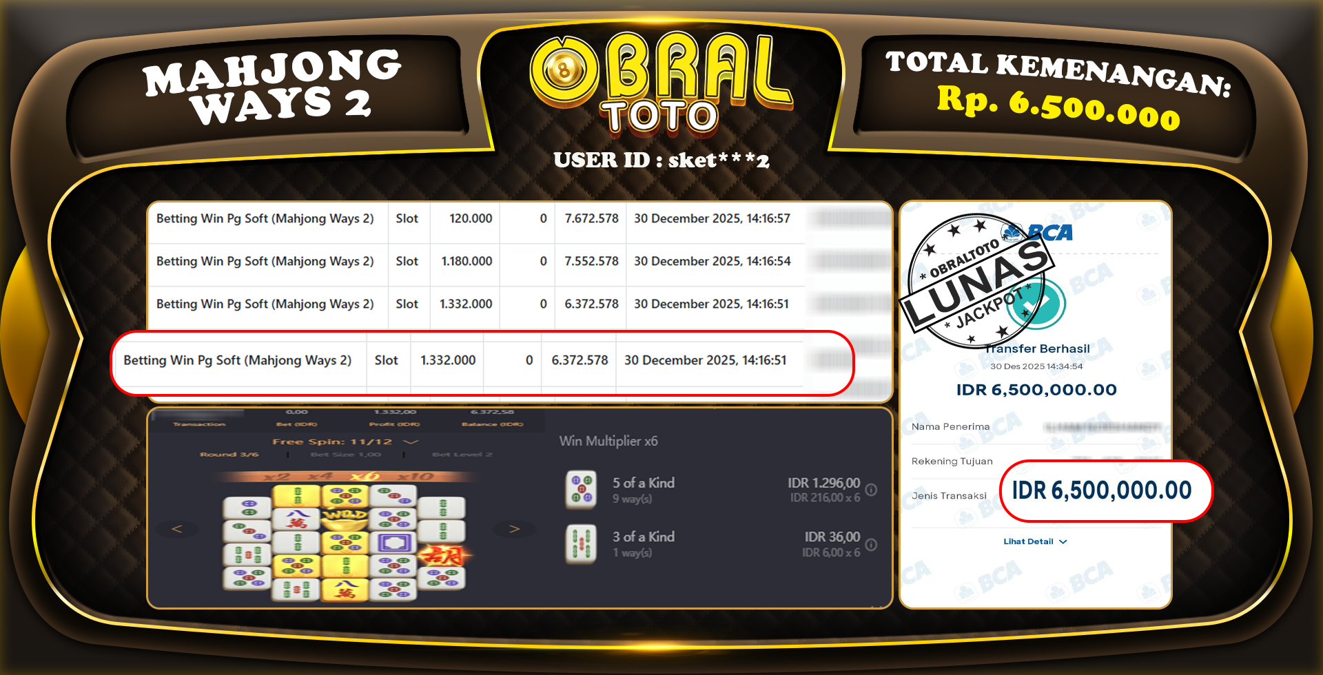 OBRAL4D – Selamat Kepada Pemenang User id : sket***2 JP MAHJONG WAYS 2 6.500.000 Juta 31 DESEMBER 2025 – Situs game online terpercaya dengan bukti jp yang telah resmi dan terjamin di Indonesia, memberikan pengalaman bermain yang aman dan menyenangkan bagi para penggemar game online. Dengan hadirnya OBRAL4D , pemain dapat menikmati kemudahan akses ke berbagai permainan seru, peluang memenangkan hadiah besar, serta keuntungan menarik yang telah disiapkan khusus untuk para member lama maupun member baru. Platform ini dirancang untuk memberikan kenyamanan dan keamanan, sehingga setiap pemain dapat fokus menikmati permainan sekaligus meraih keuntungan maksimal.