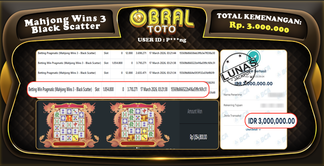 JACKPOT SLOT MAHJONG Wins 3 Black Scatter OBRAL4D 20 Maret 2026