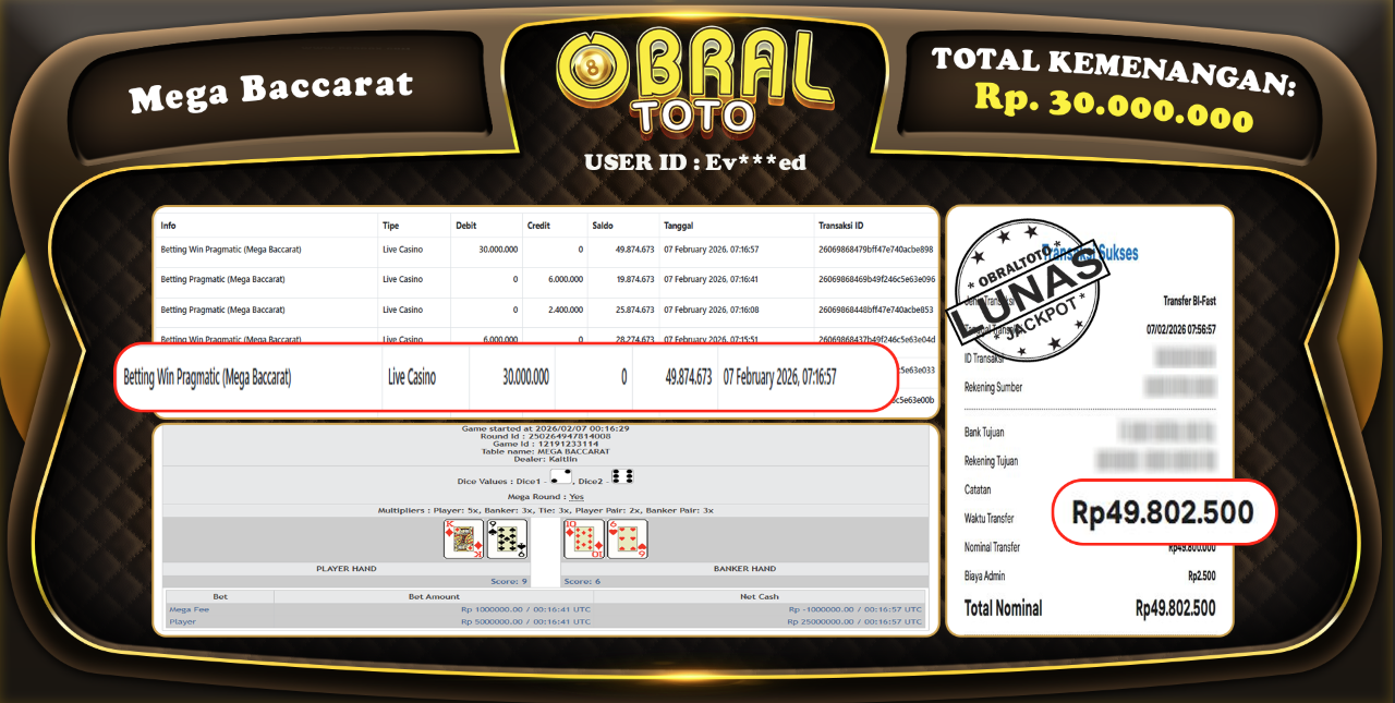 JACKPOT MEGA BACCARAT 1 OBRAL4D 7 February 2026
