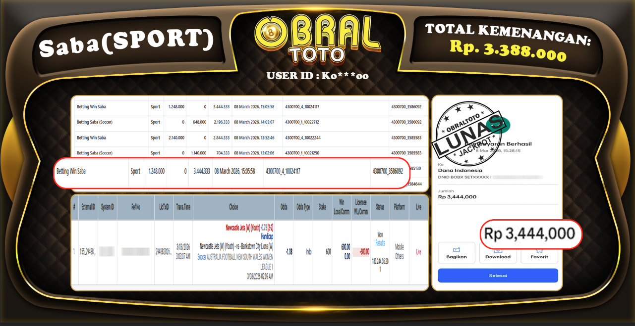 OBRAL4D – Selamat Kepada Pemenang User id : Ko***oo JP SABA SPORT Rp,3,388,000,- 09 Maret 2026 – Situs game online terpercaya dengan bukti jp yang telah resmi dan terjamin di Indonesia, memberikan pengalaman bermain yang aman dan menyenangkan bagi para penggemar game online. Dengan hadirnya OBRAL4D , pemain dapat menikmati kemudahan akses ke berbagai permainan seru, peluang memenangkan hadiah besar, serta keuntungan menarik yang telah disiapkan khusus untuk para member lama maupun member baru. Platform ini dirancang untuk memberikan kenyamanan dan keamanan, sehingga setiap pemain dapat fokus menikmati permainan sekaligus meraih keuntungan maksimal.