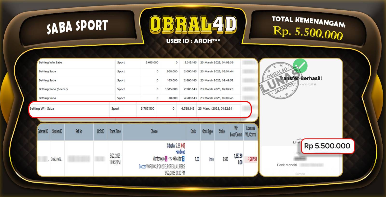 JACKPOT SABA SPORT OBRAL4D 23 Maret 2025