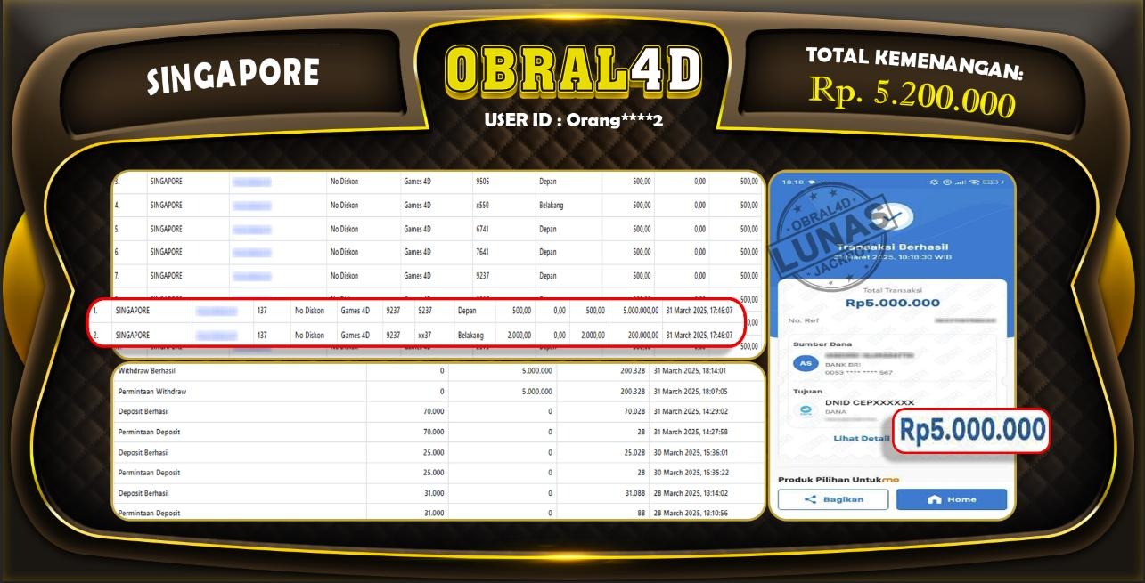 JACKPOT SINGAPORE OBRALD 31 maret 2025
