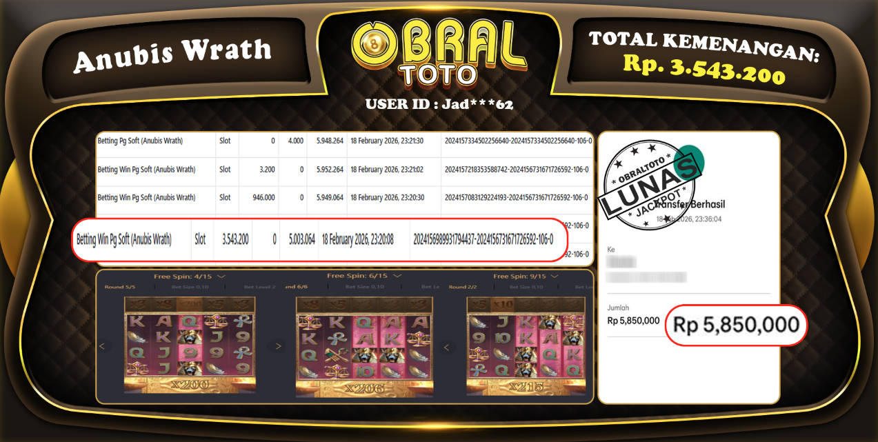 JACKPOT ANUBIS WRATH OBRALTOTO 19 FEBRUARY 2026
