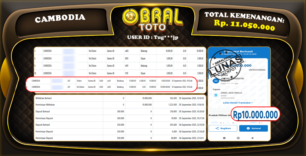 JACKPOT CAMBODIA OBRALTOTO 05 September 2025