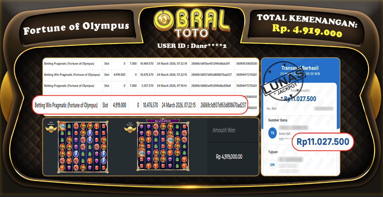 OBRALTOTO – Selamat Kepada Pemenang User id : Danr****2 JP FORTUNE OF OLYMPUS Rp 4.919.000 Juta 24 MARET 2026 – Situs game online terpercaya dengan bukti jp yang telah resmi dan terjamin di Indonesia, memberikan pengalaman bermain yang aman dan menyenangkan bagi para penggemar game online. Dengan hadirnya OBRALTOTO , pemain dapat menikmati kemudahan akses ke berbagai permainan seru, peluang memenangkan hadiah besar, serta keuntungan menarik yang telah disiapkan khusus untuk para member lama maupun member baru. Platform ini dirancang untuk memberikan kenyamanan dan keamanan, sehingga setiap pemain dapat fokus menikmati permainan sekaligus meraih keuntungan maksimal.