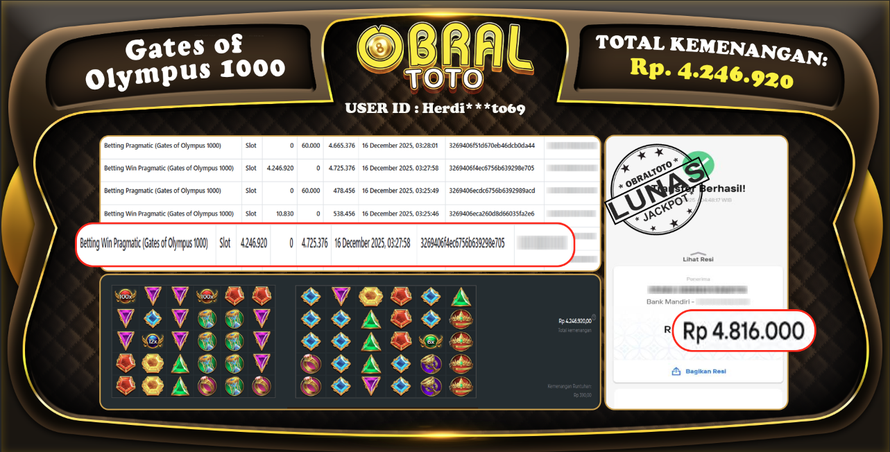 JACKPOT GATES OF OLYMPUS 1000 OBRALTOTO 16 Desember 2025