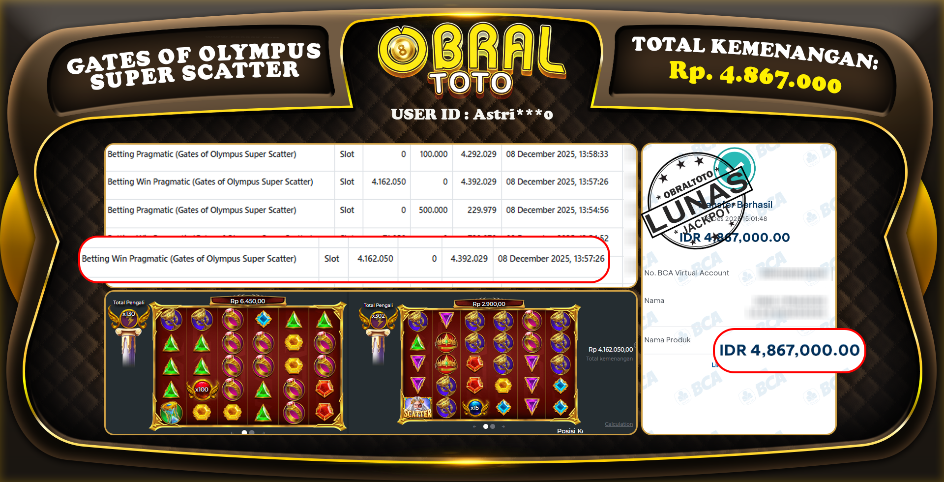 JACKPOT GATES OF OLYMPUS 1000 OBRALTOTO 11 Desember 2025