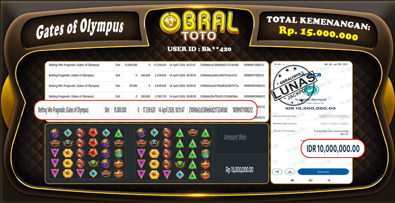 OBRALTOTO – Selamat Kepada Pemenang User id : Bk**420 JP Gates of Olympus Rp 15.000.000 – 16 APRIL 2026 – Situs game online terpercaya dengan bukti jp yang telah resmi dan terjamin di Indonesia, memberikan pengalaman bermain yang aman dan menyenangkan bagi para penggemar game online. Dengan hadirnya OBRALTOTO , pemain dapat menikmati kemudahan akses ke berbagai permainan seru, peluang memenangkan hadiah besar, serta keuntungan menarik yang telah disiapkan khusus untuk para member lama maupun member baru. Platform ini dirancang untuk memberikan kenyamanan dan keamanan, sehingga setiap pemain dapat fokus menikmati permainan sekaligus meraih keuntungan maksimal.