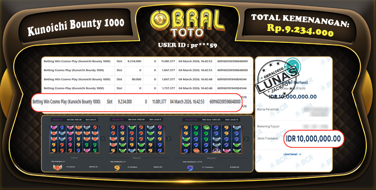JACKPOT KUNOICHI BOUNTY 1000 OBRALTOTO 04 MARET 2026