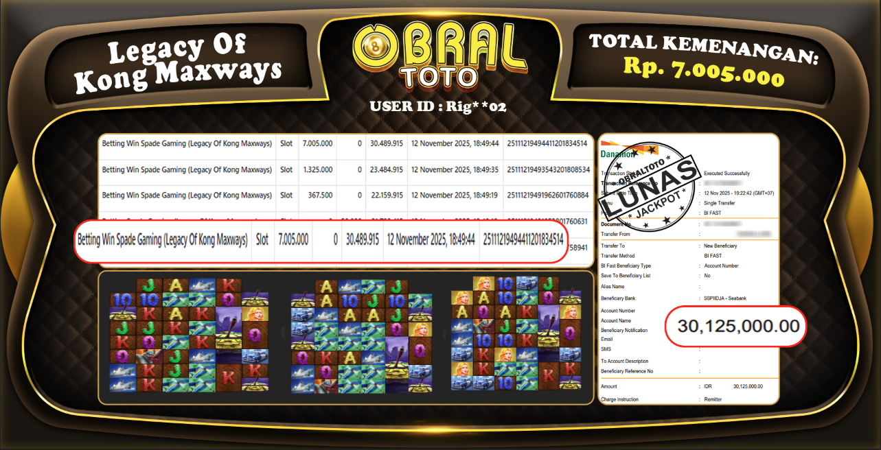 JACKPOT LEGACY OF KONG MAXWAYS OBRALTOTO 12 November 2025