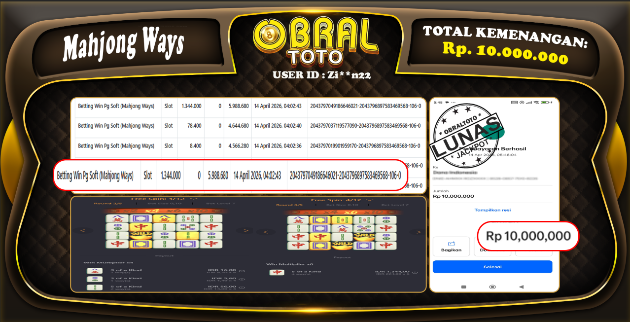 OBRALTOTO – Selamat Kepada Pemenang User id : Zi**n22 JP MAHJONG WAYS Rp 10.000.000 Juta 16 APRIL 2026 – Situs game online terpercaya dengan bukti jp yang telah resmi dan terjamin di Indonesia, memberikan pengalaman bermain yang aman dan menyenangkan bagi para penggemar game online. Dengan hadirnya OBRALTOTO , pemain dapat menikmati kemudahan akses ke berbagai permainan seru, peluang memenangkan hadiah besar, serta keuntungan menarik yang telah disiapkan khusus untuk para member lama maupun member baru. Platform ini dirancang untuk memberikan kenyamanan dan keamanan, sehingga setiap pemain dapat fokus menikmati permainan sekaligus meraih keuntungan maksimal.