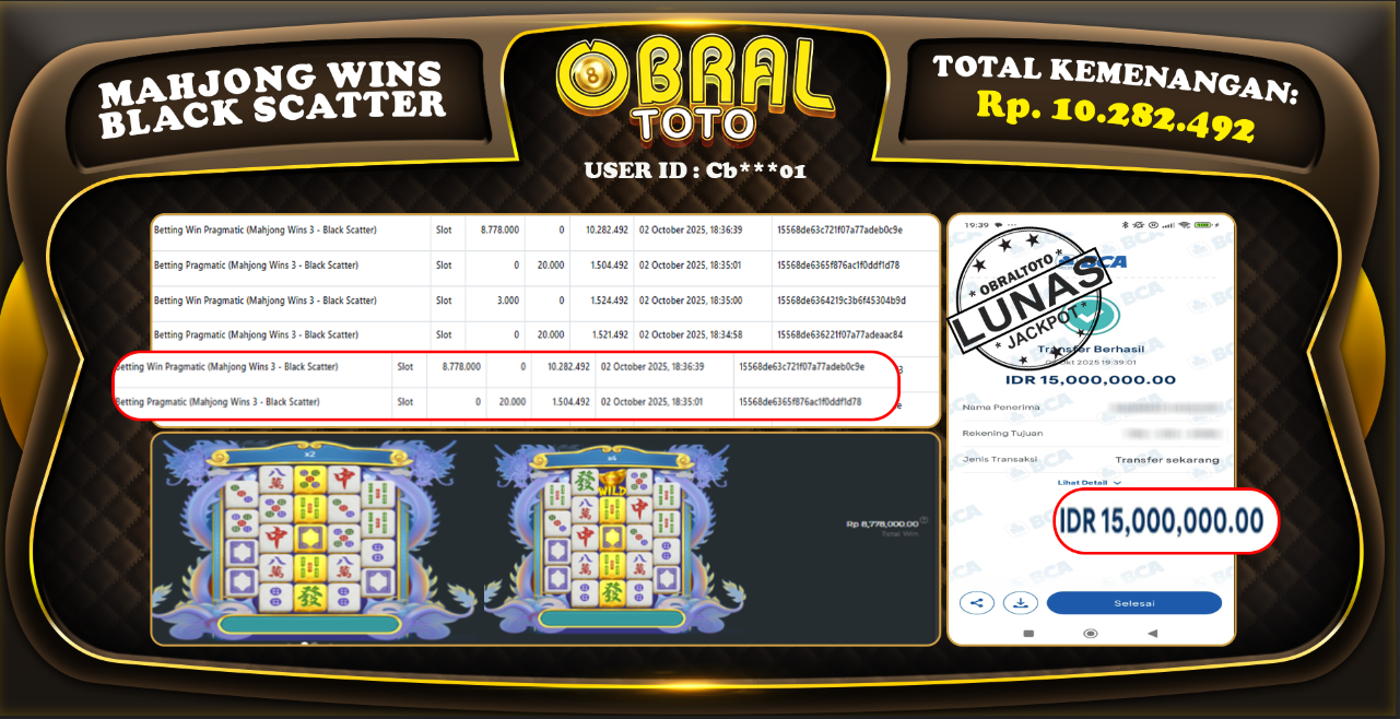 OBRALTOTO – Selamat Kepada Pemenang User id : Cb***01 JP MAHJONG WAYS Rp,10.282.492 02 October 2025- Situs game online terpercaya dengan bukti jp yang telah resmi dan terjamin di Indonesia, memberikan pengalaman bermain yang aman dan menyenangkan bagi para penggemar game online. Dengan hadirnya OBRALTOTO , pemain dapat menikmati kemudahan akses ke berbagai permainan seru, peluang memenangkan hadiah besar, serta keuntungan menarik yang telah disiapkan khusus untuk para member lama maupun member baru. Platform ini dirancang untuk memberikan kenyamanan dan keamanan, sehingga setiap pemain dapat fokus menikmati permainan sekaligus meraih keuntungan maksimal.