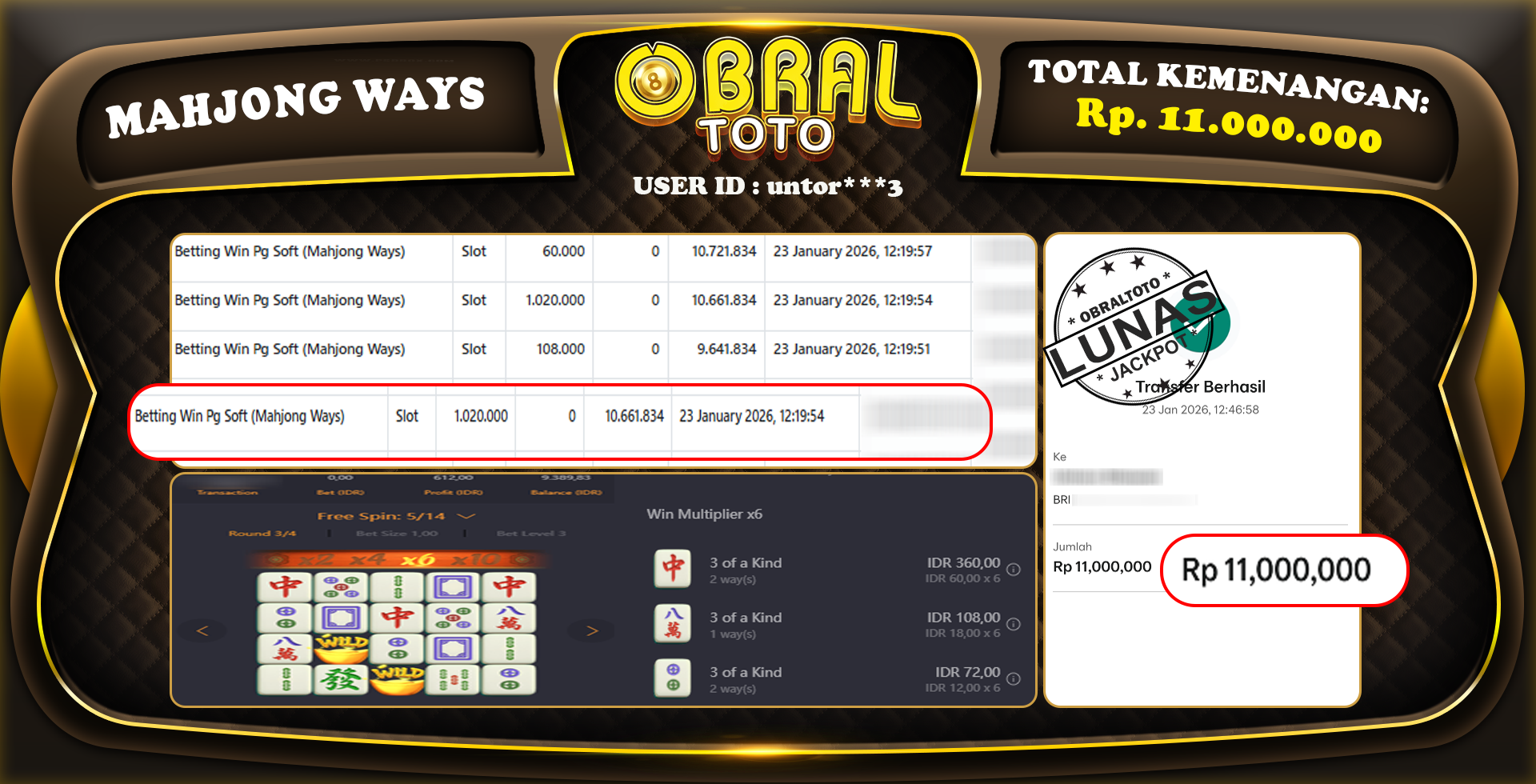 OBRALTOTO – Selamat Kepada Pemenang User id : untor***3 JP MAHJONG WAYS Rp,11.000.000 24 January 2026- Situs game online terpercaya dengan bukti jp yang telah resmi dan terjamin di Indonesia, memberikan pengalaman bermain yang aman dan menyenangkan bagi para penggemar game online. Dengan hadirnya OBRALTOTO , pemain dapat menikmati kemudahan akses ke berbagai permainan seru, peluang memenangkan hadiah besar, serta keuntungan menarik yang telah disiapkan khusus untuk para member lama maupun member baru. Platform ini dirancang untuk memberikan kenyamanan dan keamanan, sehingga setiap pemain dapat fokus menikmati permainan sekaligus meraih keuntungan maksimal.