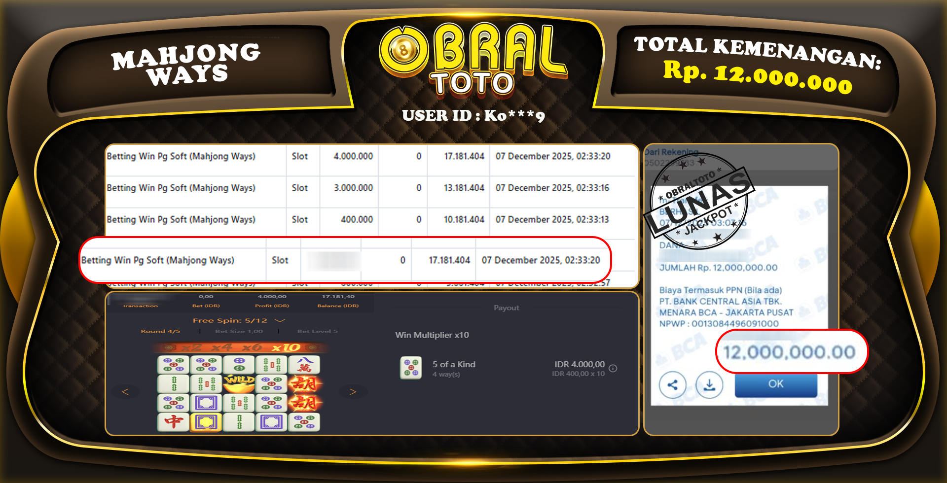 JACKPOT SLOT MAHJONG WAYS OBRALTOTO 07 Desember 2025