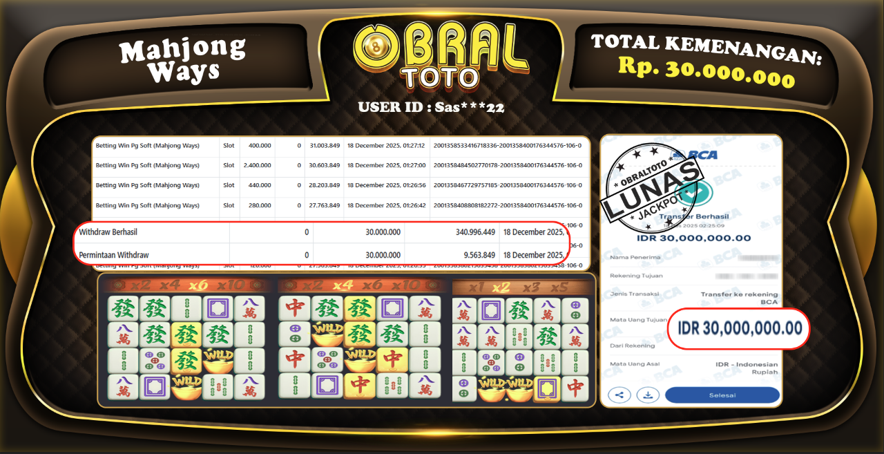 JACKPOT SLOT MAHJONG WAYS OBRALTOTO 18 Desember 2025