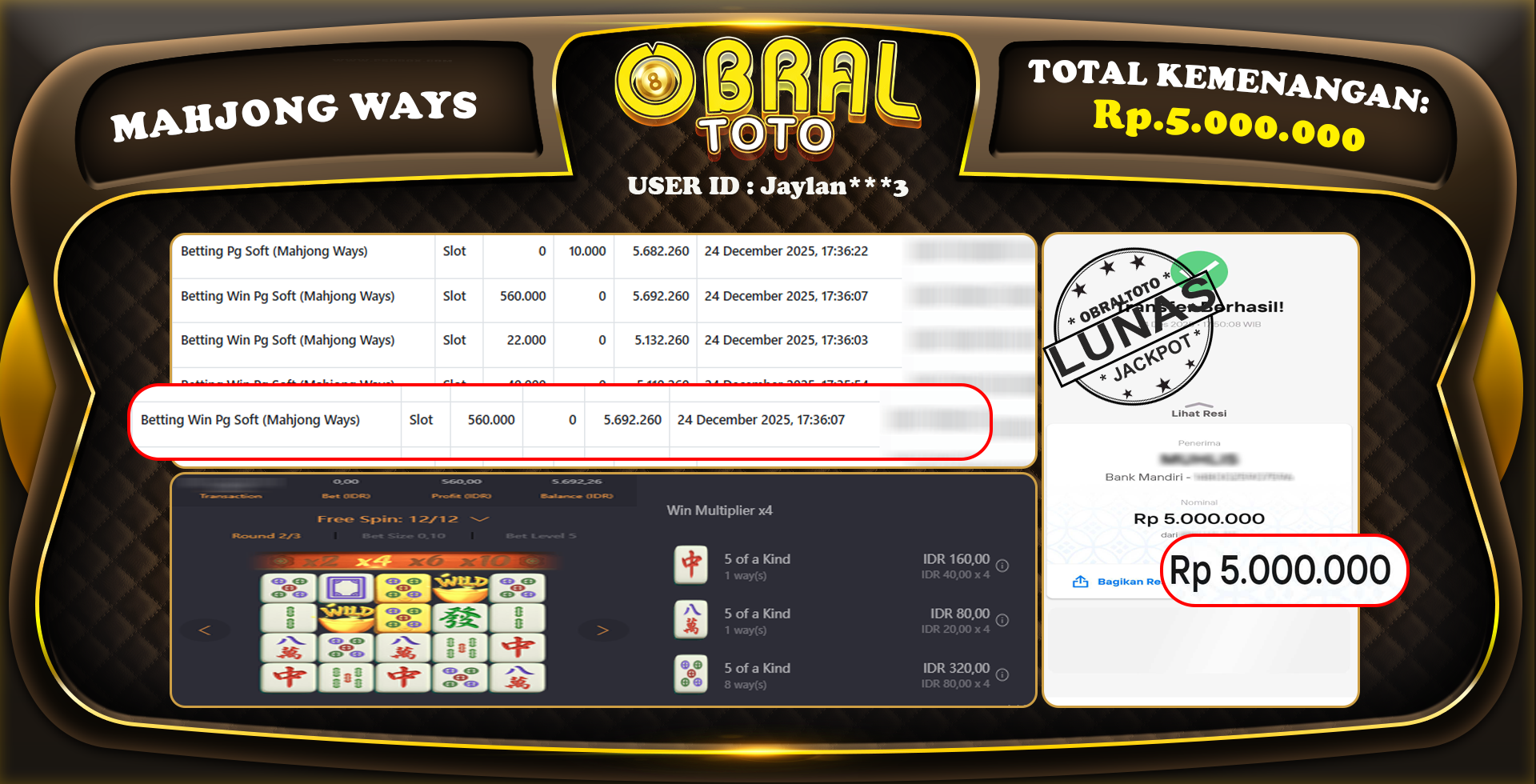 JACKPOT SLOT MAHJONG WAYS OBRALTOTO 25 Desember 2025