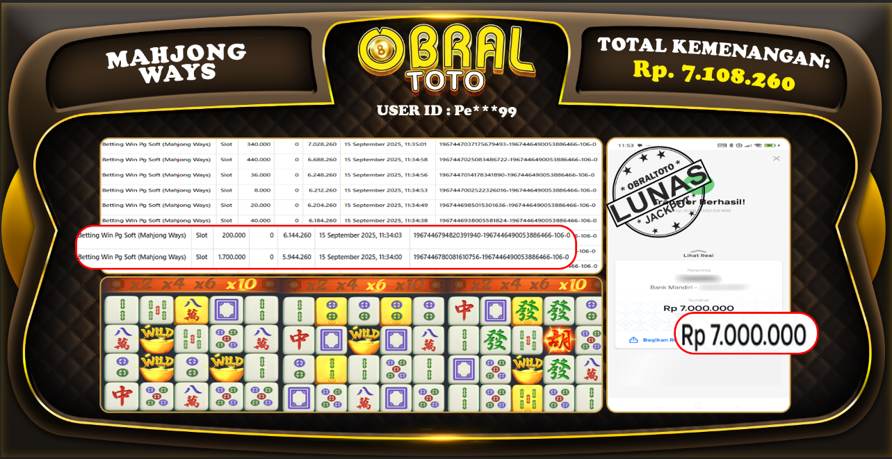 JACKPOT SLOT MAHJONG WAYS OBRALTOTO 15 September 2025