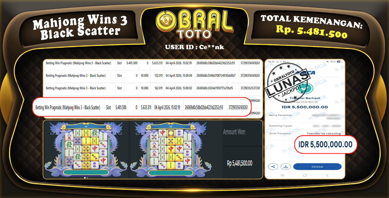 OBRALTOTO – Selamat Kepada Pemenang User id : Ce**nk JP MAHJONG Wins 3 Black Scatter Rp 5.481.500 Juta 05 APRIL 2026 – Situs game online terpercaya dengan bukti jp yang telah resmi dan terjamin di Indonesia, memberikan pengalaman bermain yang aman dan menyenangkan bagi para penggemar game online. Dengan hadirnya OBRALTOTO , pemain dapat menikmati kemudahan akses ke berbagai permainan seru, peluang memenangkan hadiah besar, serta keuntungan menarik yang telah disiapkan khusus untuk para member lama maupun member baru. Platform ini dirancang untuk memberikan kenyamanan dan keamanan, sehingga setiap pemain dapat fokus menikmati permainan sekaligus meraih keuntungan maksimal.