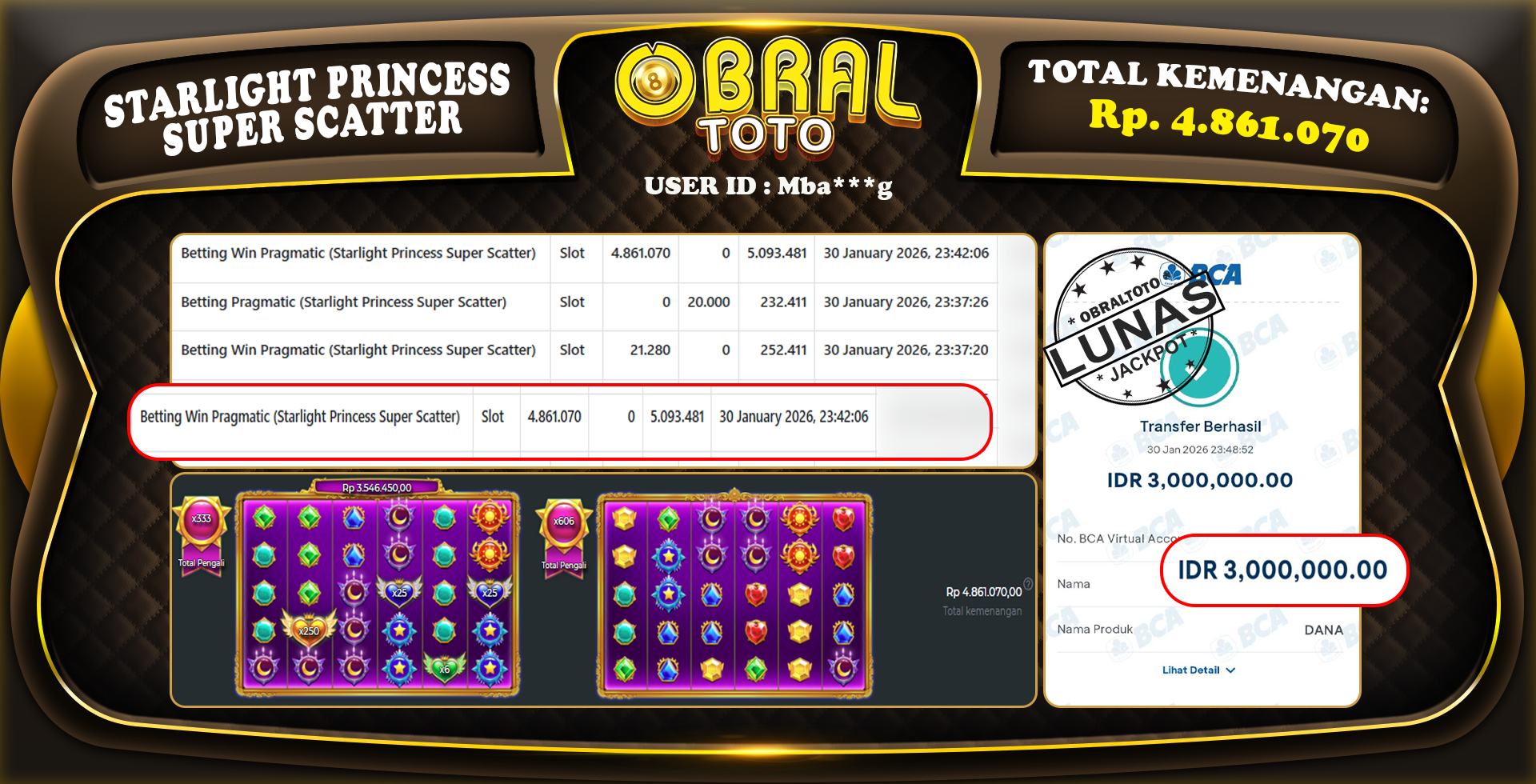 JACKPOT SLOT STARLIGHT PRINCESS SUPERT SCATTER OBRALTOTO 31 JANUARY 2026