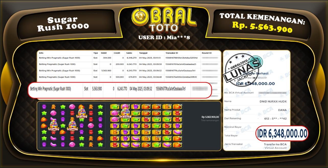 OBRALTOTO – Selamat Kepada Pemenang User id : Dak**** Sugar Rush 1000 5.563.900 Juta 03 MEI 2024 – Situs game online terpercaya dengan bukti jp yang telah resmi dan terjamin di Indonesia, memberikan pengalaman bermain yang aman dan menyenangkan bagi para penggemar game online. Dengan hadirnya OBRAL4D , pemain dapat menikmati kemudahan akses ke berbagai permainan seru, peluang memenangkan hadiah besar, serta keuntungan menarik yang telah disiapkan khusus untuk para member lama maupun member baru. Platform ini dirancang untuk memberikan kenyamanan dan keamanan, sehingga setiap pemain dapat fokus menikmati permainan sekaligus meraih keuntungan maksimal.