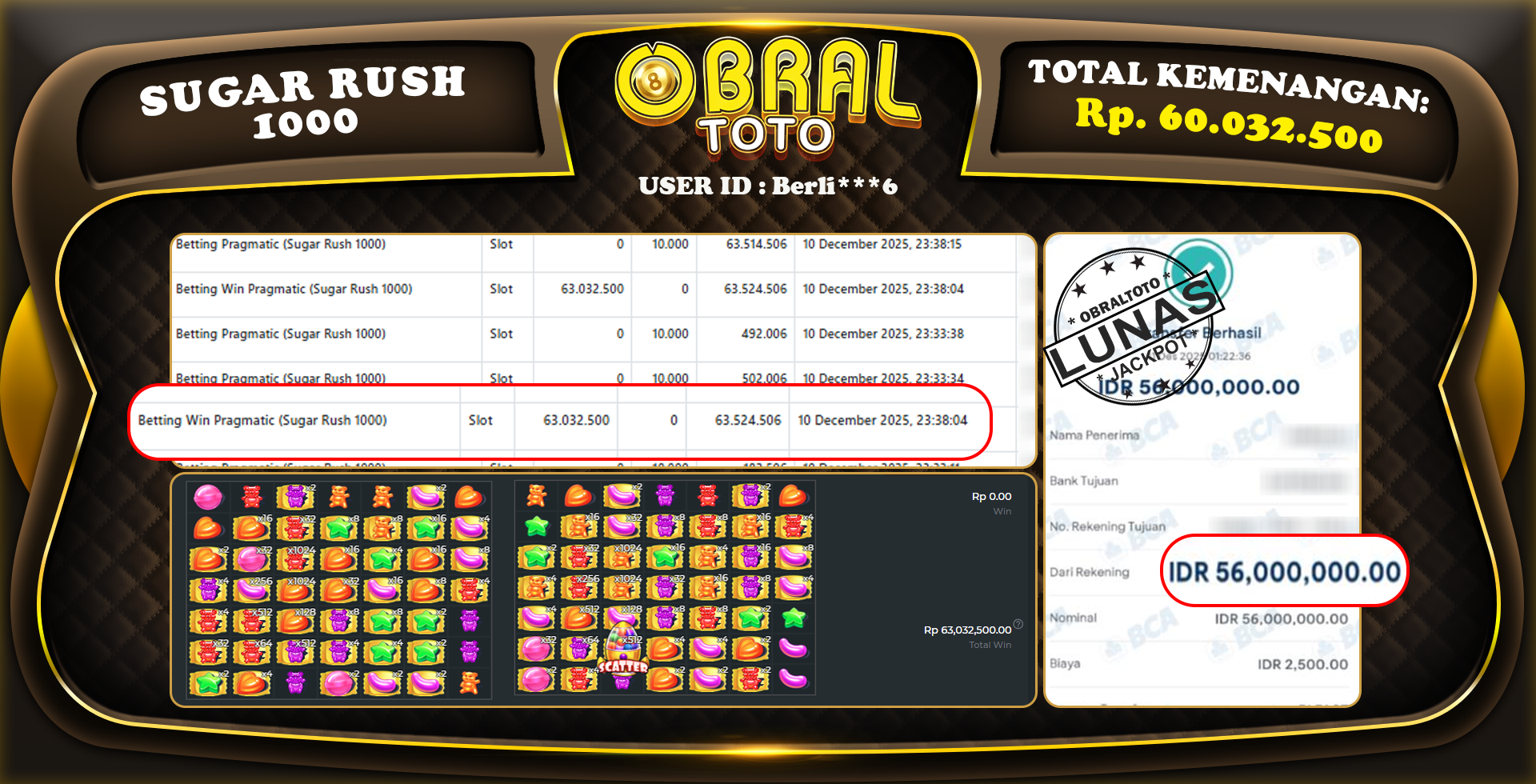 OBRALTOTO – Selamat Kepada Pemenang User id : Be*****76 Sugar Rush 1000 60.037.500 Juta 11 DESEMBER 2025 – Situs game online terpercaya dengan bukti jp yang telah resmi dan terjamin di Indonesia, memberikan pengalaman bermain yang aman dan menyenangkan bagi para penggemar game online. Dengan hadirnya OBRALTOTO , pemain dapat menikmati kemudahan akses ke berbagai permainan seru, peluang memenangkan hadiah besar, serta keuntungan menarik yang telah disiapkan khusus untuk para member lama maupun member baru. Platform ini dirancang untuk memberikan kenyamanan dan keamanan, sehingga setiap pemain dapat fokus menikmati permainan sekaligus meraih keuntungan maksimal.