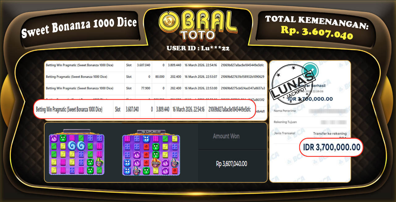 OBRALTOTO – Selamat Kepada Pemenang User id : lu***22 JP SWEET BONANZA SUPER Rp 3,607,000 Juta 20 Maret 2026 – Situs game online terpercaya dengan bukti jp yang telah resmi dan terjamin di Indonesia, memberikan pengalaman bermain yang aman dan menyenangkan bagi para penggemar game online. Dengan hadirnya OBRALTOTO , pemain dapat menikmati kemudahan akses ke berbagai permainan seru, peluang memenangkan hadiah besar, serta keuntungan menarik yang telah disiapkan khusus untuk para member lama maupun member baru. Platform ini dirancang untuk memberikan kenyamanan dan keamanan, sehingga setiap pemain dapat fokus menikmati permainan sekaligus meraih keuntungan maksimal. 3,607,000